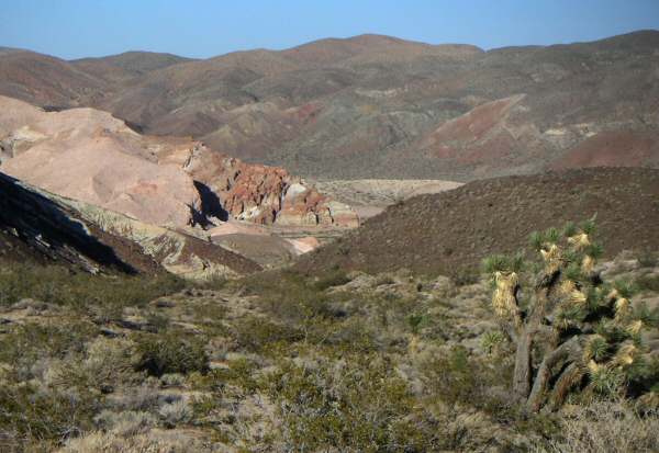 View from Upper Hagen Canyon down into Lower Hagen Canyon and beyond to the Red Cliffs. This spot is a only a short hike from the main campsite. |